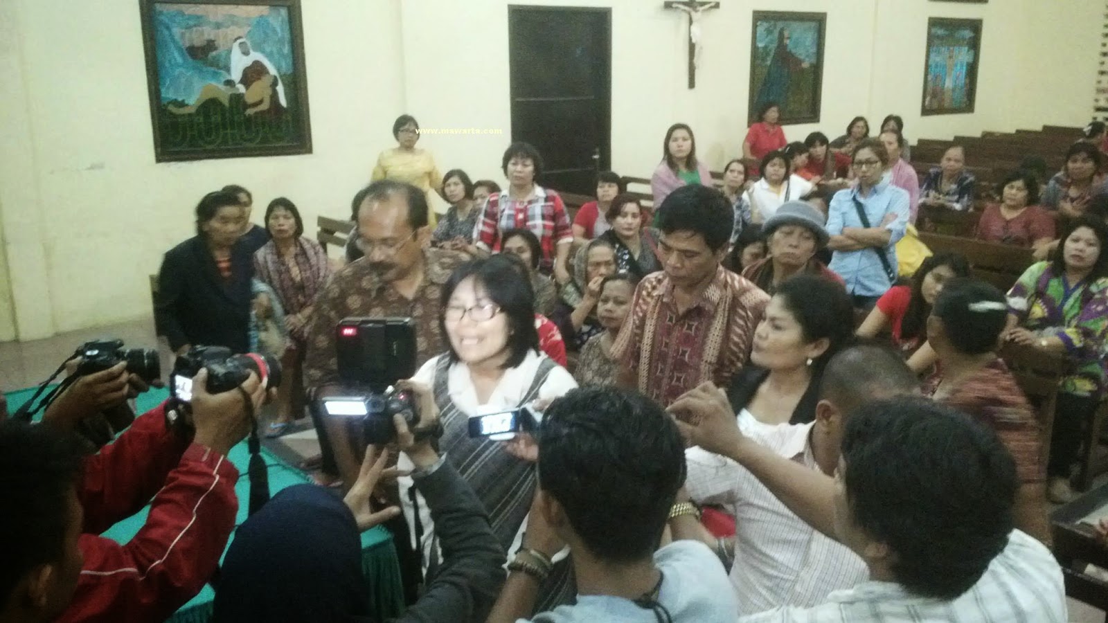 | Pdt. Mindawati Perangin angin saat diwawancarai TV One di GBKP Kemenangan Tani (foto4905ppwi) |